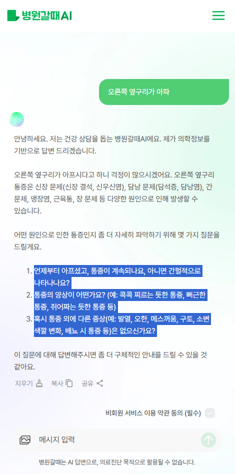 병원갈때 | 건강질문, 인터넷에 검색하지 마세요. 병원갈때AI가 의료 상담을 무료로 해드립니다.